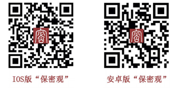 用手机浏览器扫描下列二维码下载“保密观”APP,注册成为会员;已下载安装的如看不到考试页面,请更新APP至最新版本。