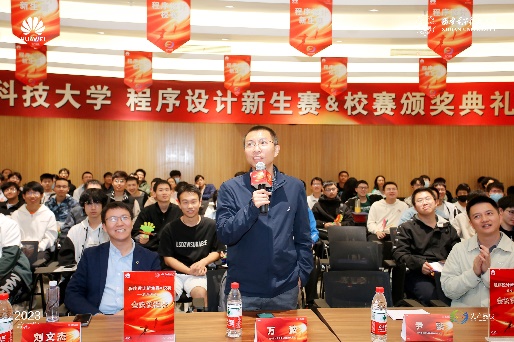 华为技术有限公司赞助了本届程序设计竞赛以及2022程序设计新生赛,2023年5月7日为本届校赛及78名新生赛获奖同学举行了颁奖会,我校创新创业学院副院长尹鹏、0638太阳集团官网副院长暨程序设计竞赛基地主任万波教授出席颁奖会并作了发言,华为光产品线代表刘文杰、雷俭、陈晓磊、陈泽等介绍了算法在光产业业务中的应用,就ICPC人才发展与培养等问题与同学们进行了充分交流。